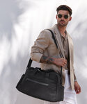 Minimalist styling. Zipped main compartment. Premium-finish internal lining. Three slip pockets inside main compartment. Two large end slip pockets. Rear zipped pocket doubles as a sleeve to slide over a suitcase handle. Outer zipped front pocket with rain flap and internal slip pockets. Detachable adjustable shoulder strap. Premium webbing carry handles. TearAway label for ease of rebranding. Overhead cabin luggage size – suitable for most airlines. 100% certified recycled polyester fabric.